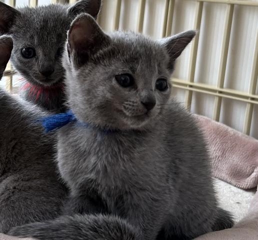 | その他 | ロシアンブルーの仔猫、両親そろってCFAのチャンピオンでとてもきれいな子です。 愛情深く子育て上手なママに大事に大事にされて、すくすく育っています。 成長時の体重は2.5K~3.5K セミフォーリンの平均よりやや小さめの種類です。 現在離乳食が完了し、これからいろんな社会性を身に着けてまいります。お引き渡しは生後2か月をすぎ2月初旬以降となります。 下から2番目はママの写真で今まで3頭のグランドチャンピオンを育ててくれました。 子育て上手なお母さんです。 ロシアンブルーの女の子は見た目はクールビューティーですが、飼い主に忠実でとても甘えたな子が多いです。 3頭産まれた姉妹の長女で、控えめで賢い性格をしており、食いしん坊さんでちょっと怖がりさんの慎重派です。 当店の猫ちゃんはとても人懐こいと好評をいただいております。 予約票の記入と予約金の納入を持って、ご予約成立とさせて頂きます。ご予約が決定した場合は他に募集致しません。 なお予約金は、お客様都合のキャンセルの場合、返却は致しかねます。 こちらの都合にてキャンセルの場合、全額返金させて頂きます。 見学は、事前予約をお願いします。予約無しに猫カフェに来店されましても、対応できかねます。 なお、見学には通常猫カフェ利用料(1時間1500円)が掛かりますのでご了承ください。 価格には、生体代金以外、ワクチン代・マイクロチップ代・血統書代(後日郵送)・お迎えセットを含んでおります。 記載の価格以外は必要ないです。 なお、hotmail yahoo等のフリーメールは、迷惑フォルダーに分類されることがありお返事が遅くなりますのでご注意ください。 2024年6月問題のせいか、当店のシステム上、gmail宛に送受信できませんのでお問い合わせはほかのキャリアメールをご利用ください。 |