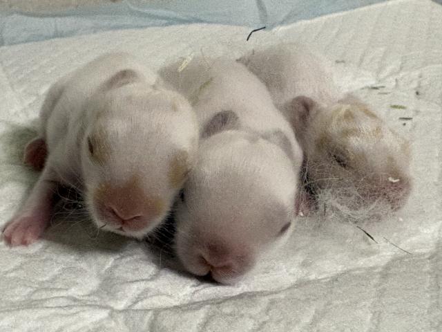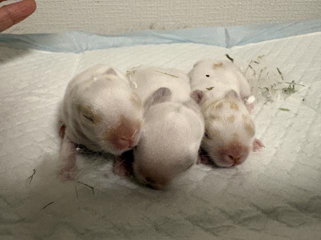 | その他 | 🌼2026/2/6生まれ ネザーランドドワーフ ベビー🌼 当ラビトリー で生まれた元気な3兄弟です。 パパは Self Chinchilla (Fuzzy)【p5】、ママは Broken (Tort)【p4】。 両親とも体重は 1,000g未満の小柄タイプ で、コンパクトで可愛らしい血統です。 現在のところ3羽ともブロークン表現が見られます(中央の子は成長により確定予定)。 人に慣れた穏やかな性格になるよう、毎日やさしくお世話しています。 お引き渡しは生後40日以降の予定です。血統書発行・飼育相談・アフターフォローも対応可能です。 大切に育ててくださるご家族とのご縁をお待ちしております^ ^ |