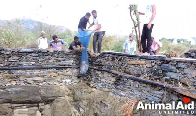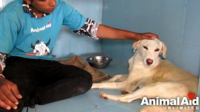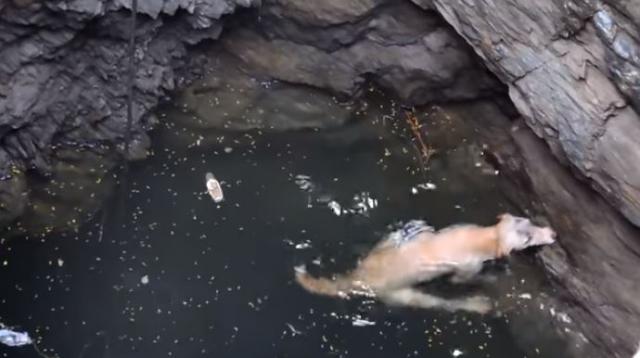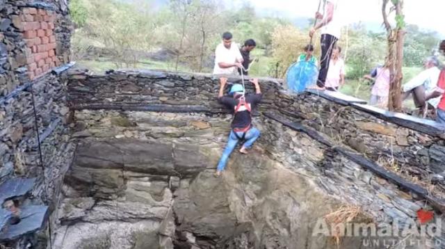 インドのアニマルエイドに電話が入り早速レスキューに行ったところ、数時間ははまって疲れ果ててしまったワンコが穴に落ちていました。