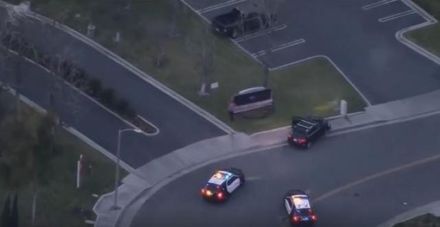 パトカーに追い詰められた男は、隣の車から女性を引きずり出して車を乗っ取り、再度逃げはじめました!