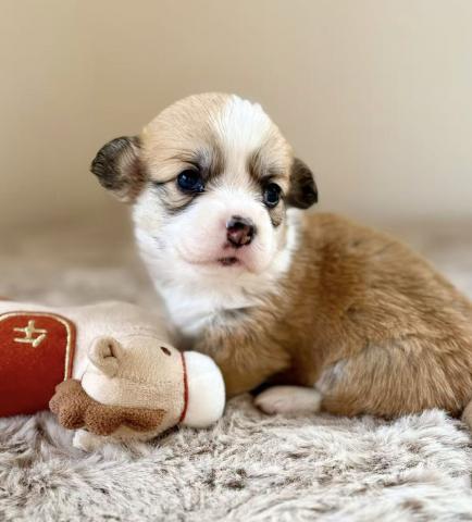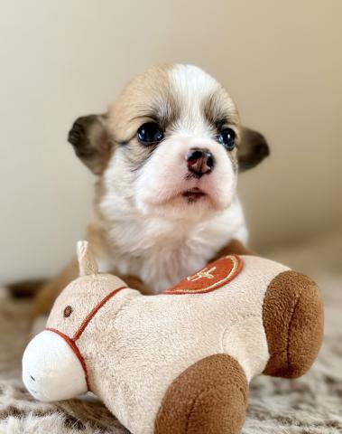 | その他 | 長女です。 珍しいフラッフィー女の子、マズル短く、小柄で、パパに似てます。 希少な毛色フォーン&ホワイト、レッドやセーブルと比べて淡く、優しい色合いをしています。 |